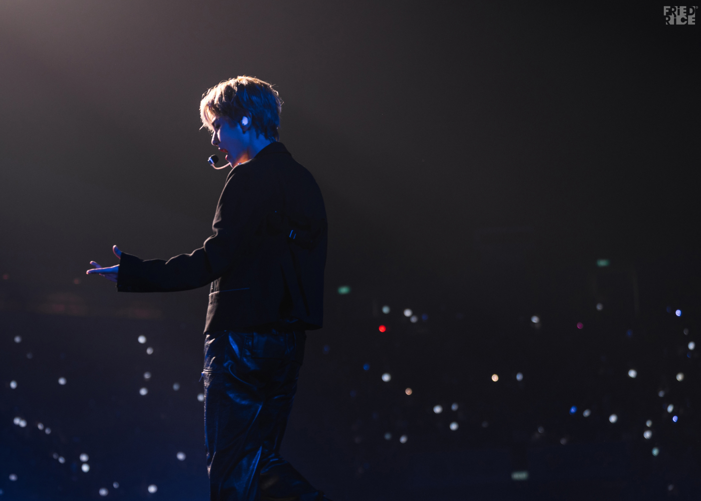 During the encore, he reappeared wearing a flower crown, delighting fans as he pulled out an EXO lightstick and got the fans following along with his movements as he sang “Garden in the Air”. Swirling, waving and spinning it with pure joy, he transformed the stadium into a dazzling sea of synchronised lights, uniting everyone in a shared, magical moment.